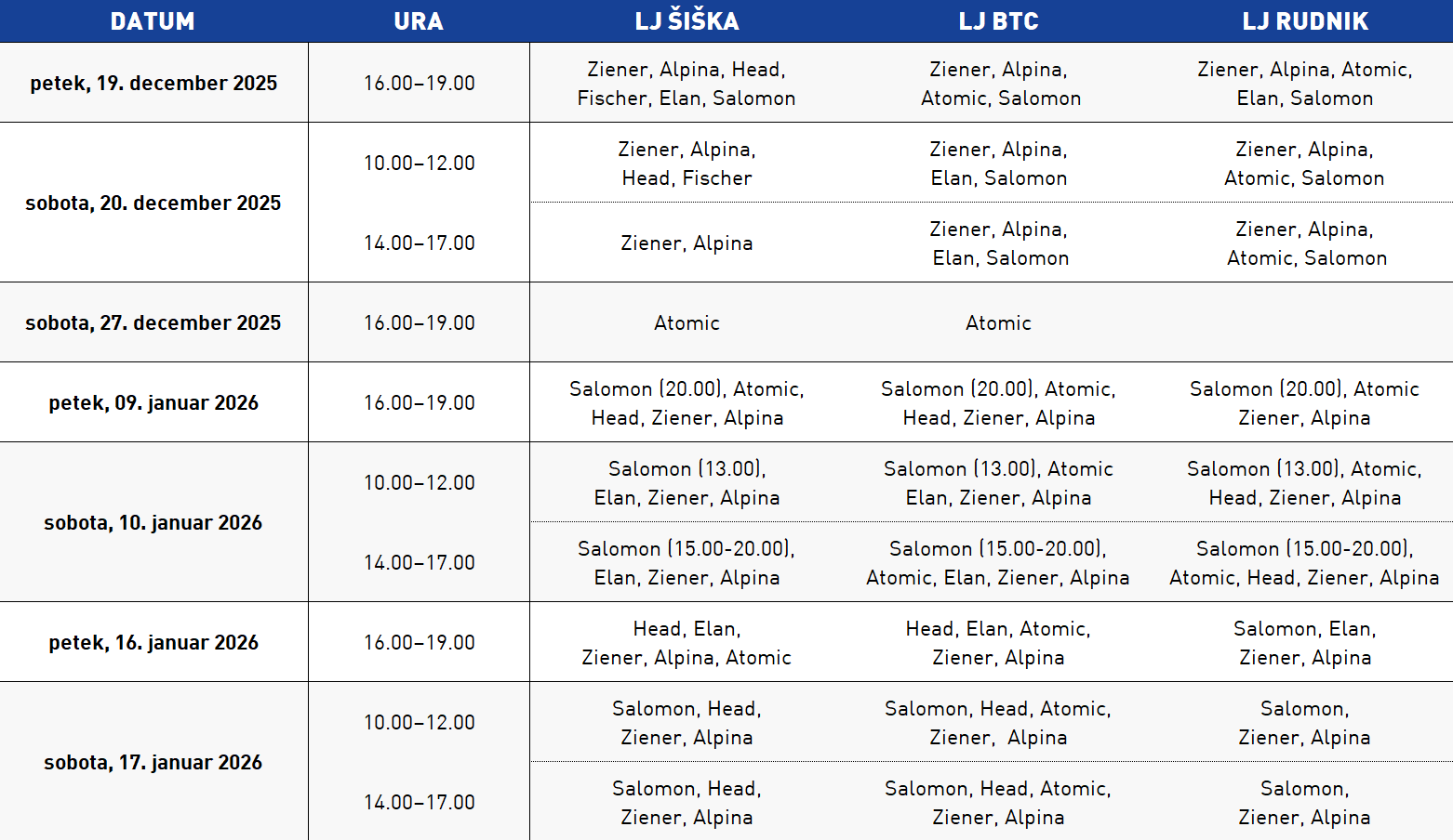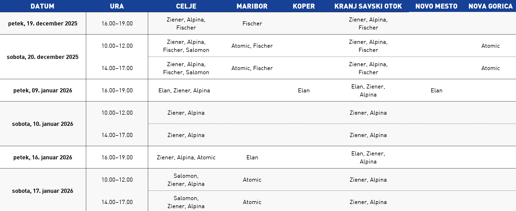 Trenutno ni razpisanih terminov za teste smuči.