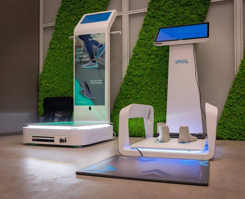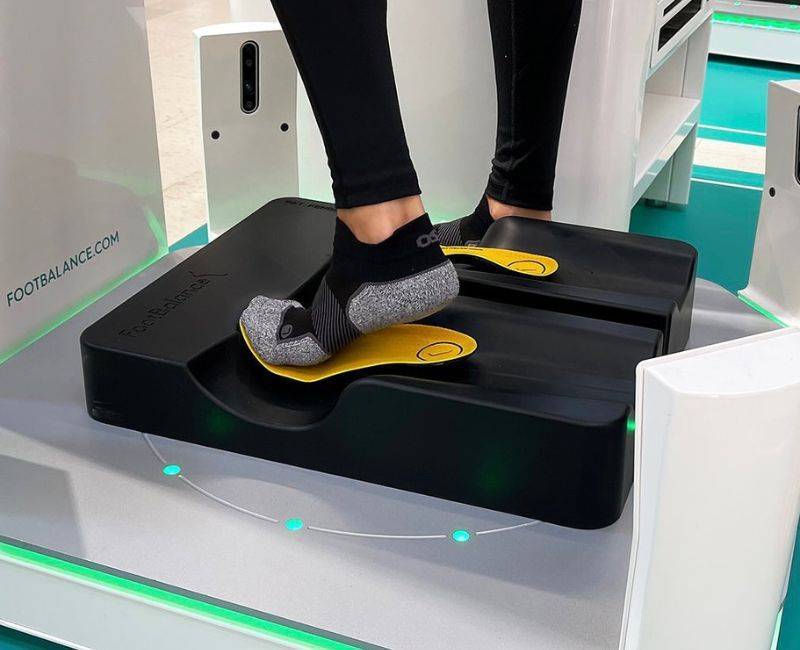 Opravi meritev na napredni napravi za meritev stopal – SafeSize. Naprava je zasnovana tako, da s pomočjo analize pomaga najti idealen športni copat zate.